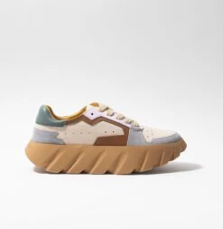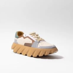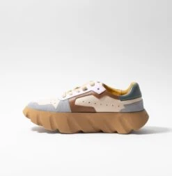 Features: Low-top style, paneled leather uppers, tire-inspired, ergonomic sole, arch support, lace-up closure