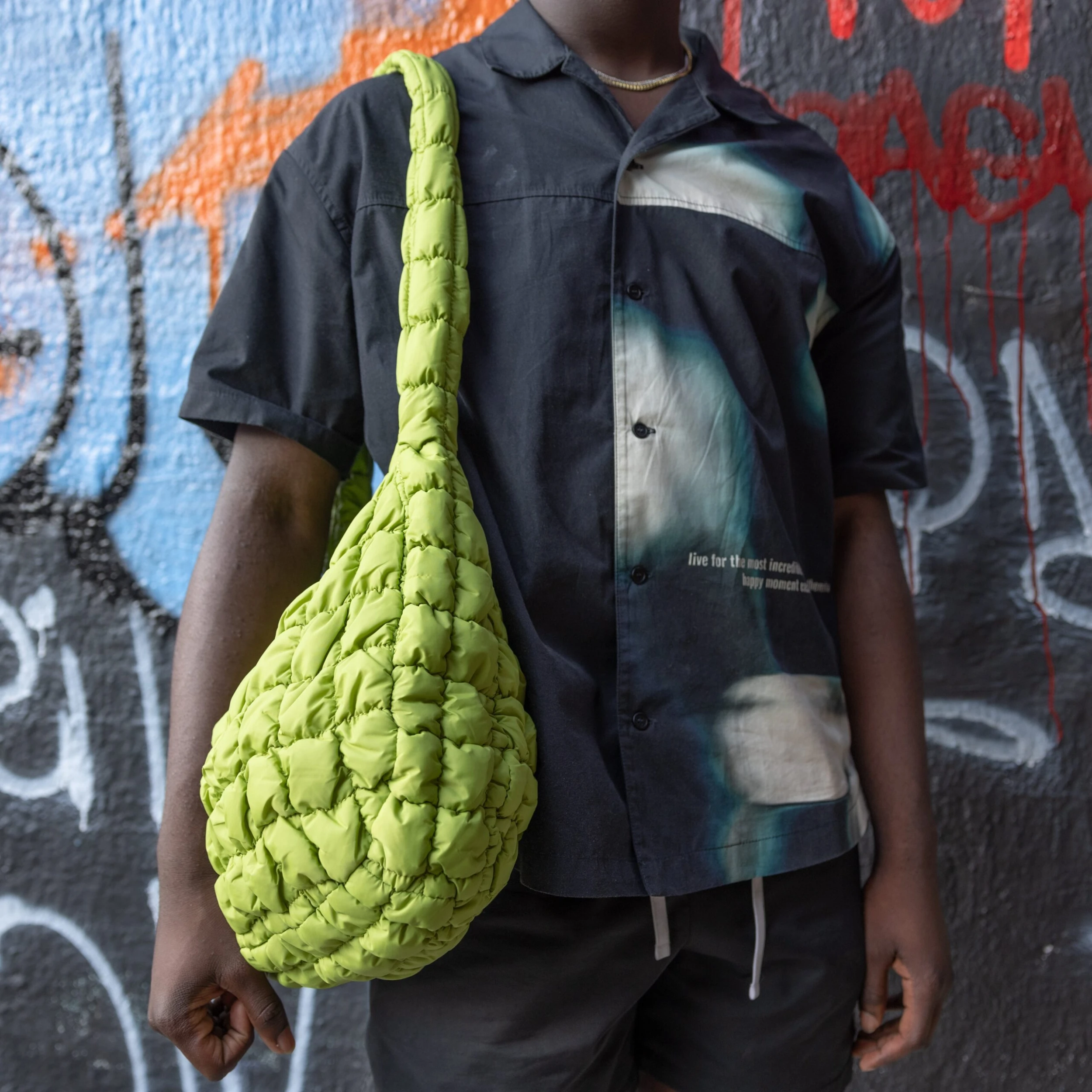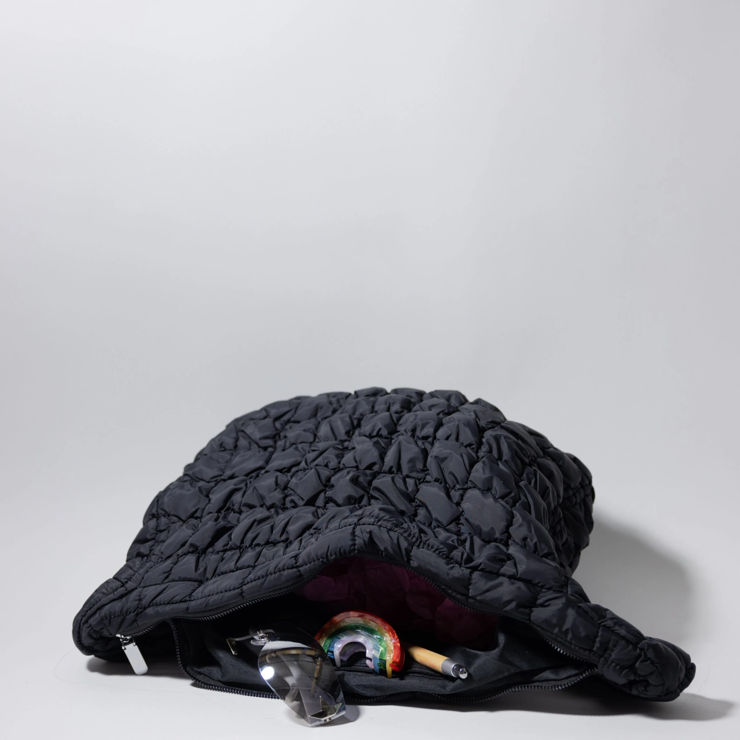 Take it all with you in this fun quilted bag! The generous size ensures that you can pack all of your daily essentials, quilted in a lightweight durable nylon that will lighten your load. The extra long strap allows you to wear as a crossbody or shoulder bag.