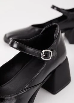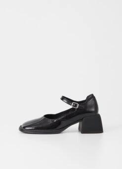 Ansie is the contemporary Mary Jane pumps with a bold look. The style is crafted in dark blue patent leather featuring a rounded toe shape and a decorative ankle strap with buckle fastening. The flared block heels measure 59 mm.