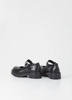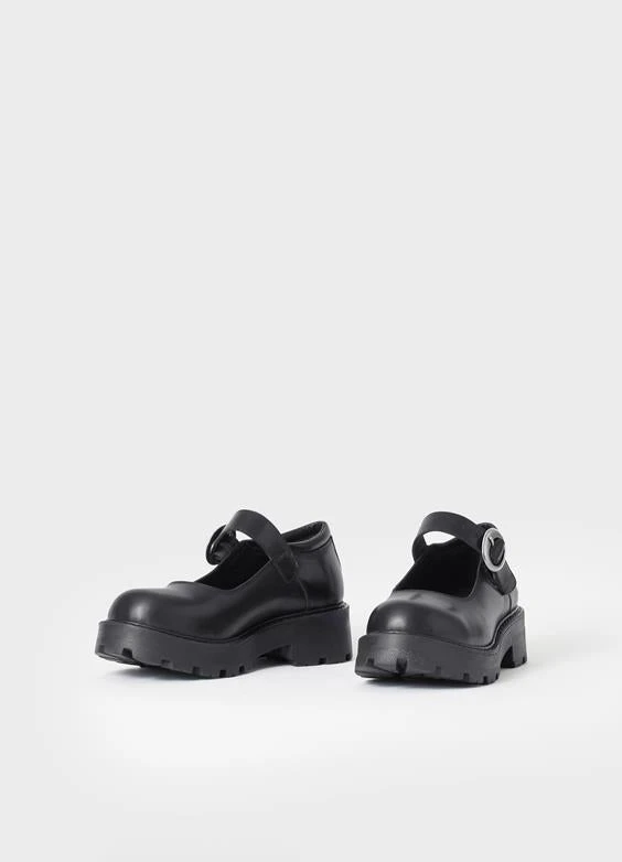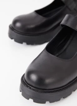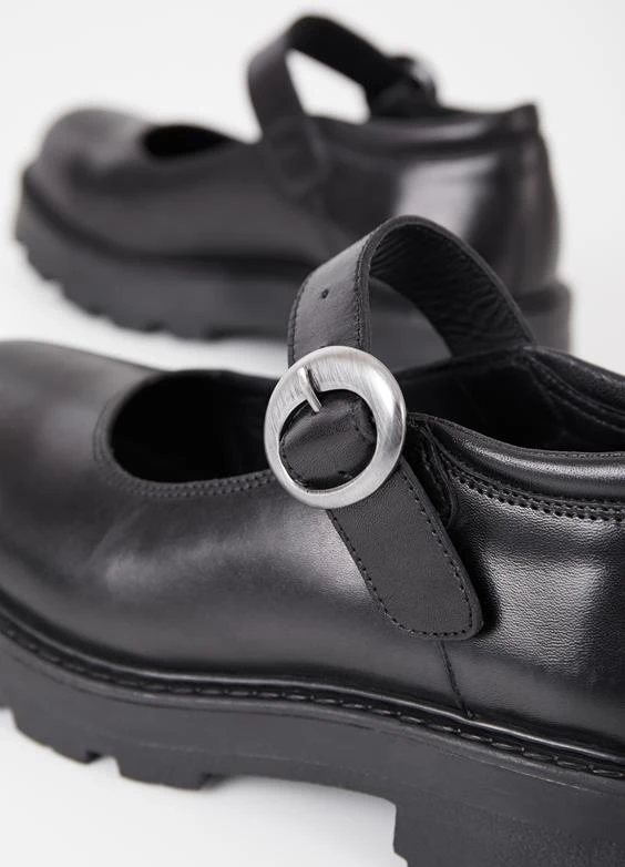 Cosmo 2.0 is the chunky Mary Jane-inspired shoes with an elevated design. The online exclusive style is crafted in black leather featuring rounded toes and a silver-toned buckle strap. The chunky rubber outsoles measure 45mm.