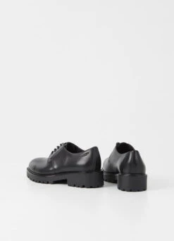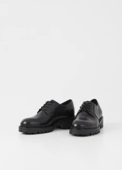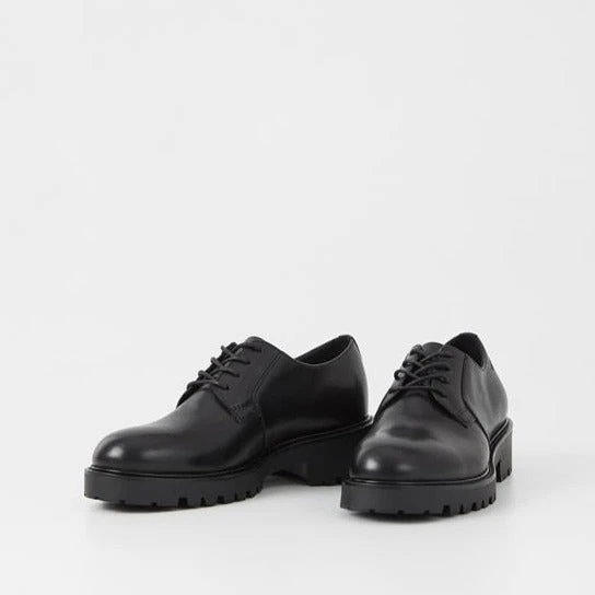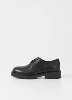 Classic lace-up shoes Kenova has become a true Vagabond icon that will last beyond the seasons, easily recognized by its characteristic chunky design. Crafted in smooth black leather, the clean upper features a classic derby lacing and rounded toes. The style sets on sturdy rubber outsoles with raised heels measuring 40mm, providing an elevated look and great fit.